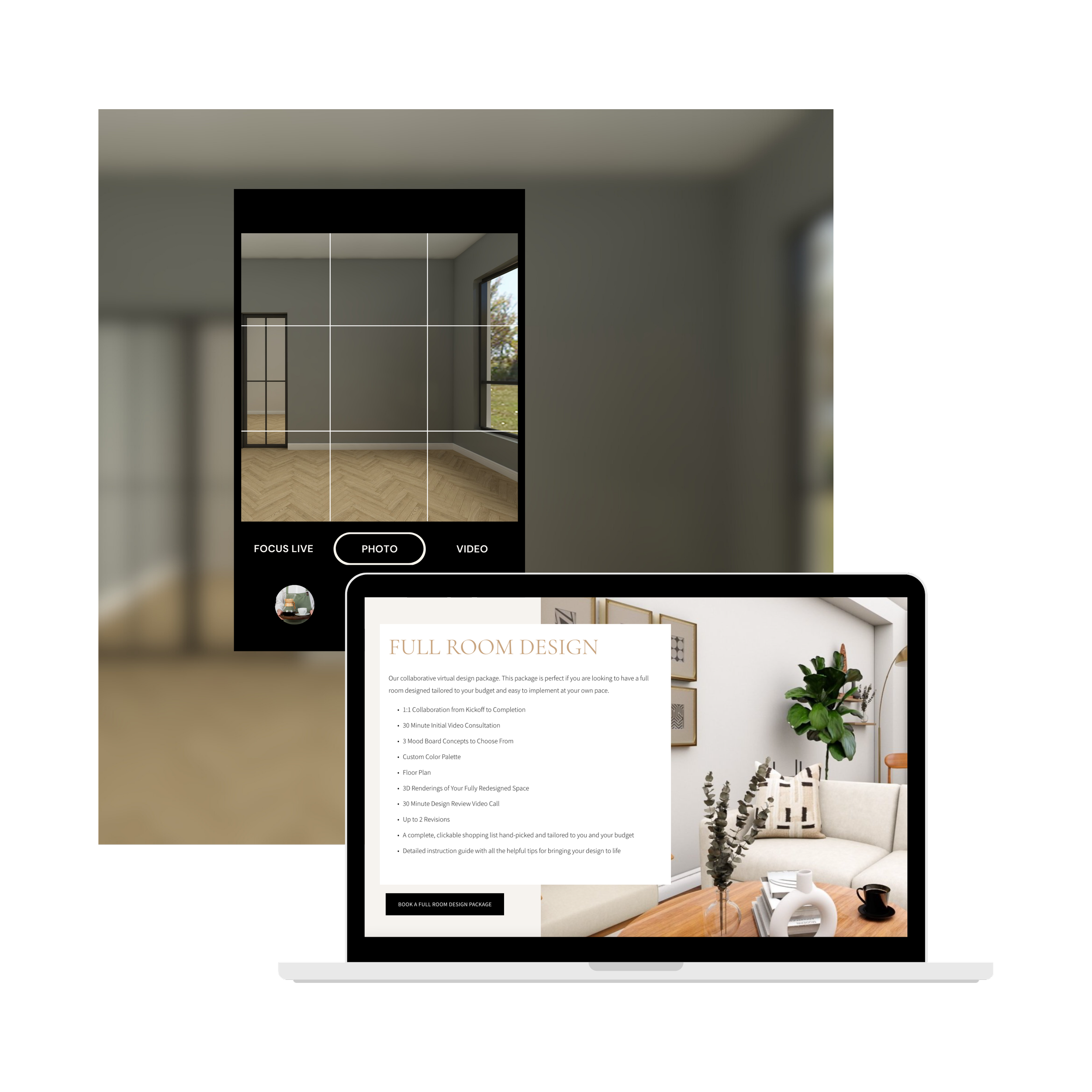 Choose the package that’s right for you and book your design. A Project Questionnaire and a link to book your Kick-Off Call will arrive in your inbox following purchase. This questionnaire will help us understand you, your living situation, your project goals, and your style and preferences better. Like a meet and greet. Or a (painless) coffee date.